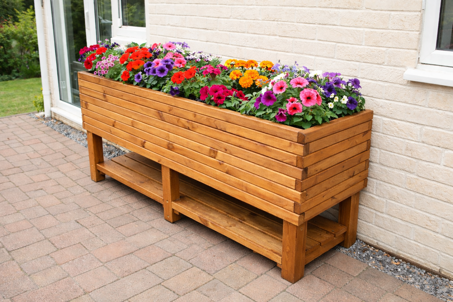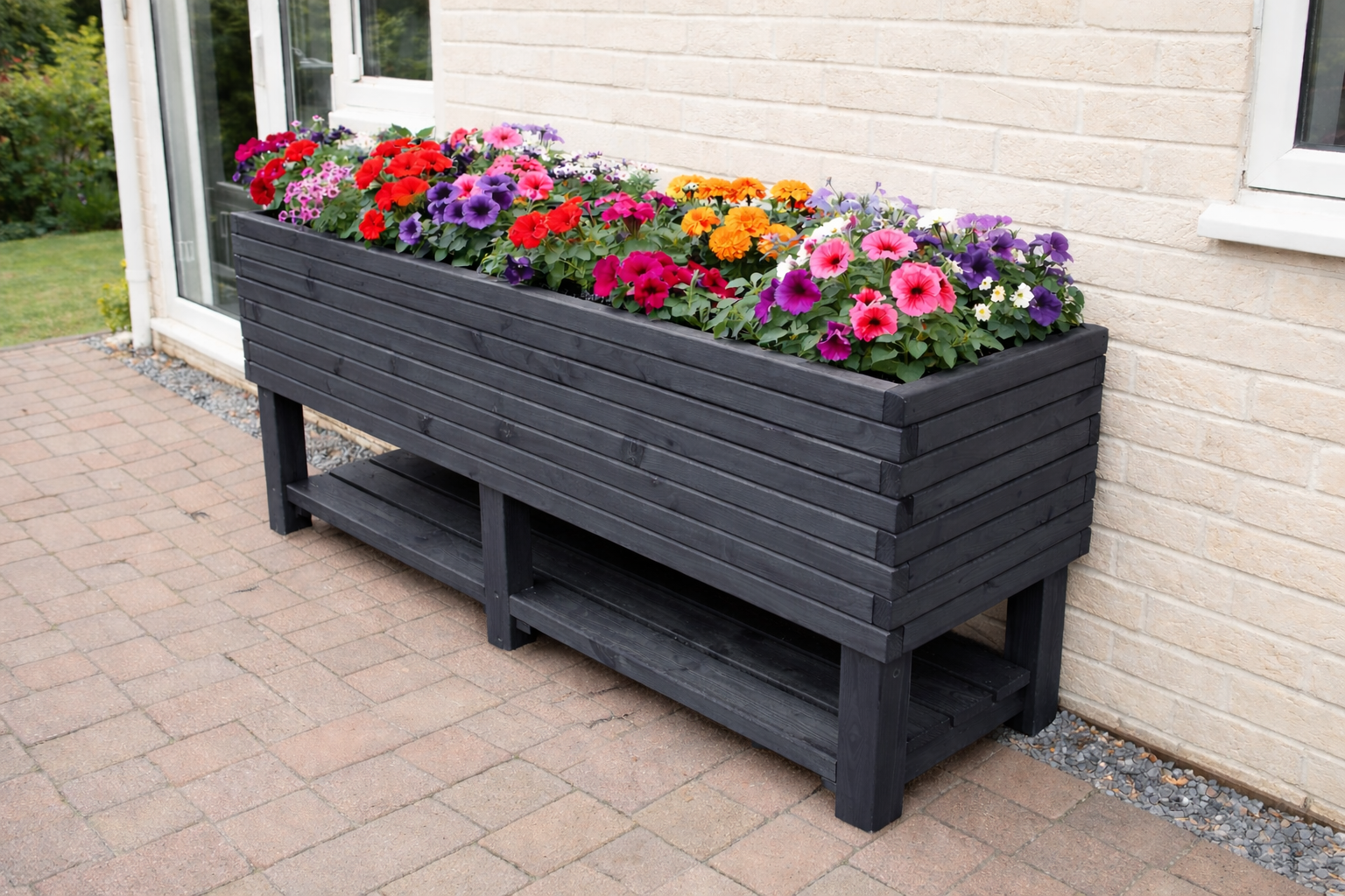 Planter is a high level timber planter with four partitions ideal for growing herbs, vegetables or flowers. Its 80cm height makes it comfortable to work at – so is ideal for those who have trouble bending down to garden. Planter is made from pine timber and treated with colour you pick, will look great in any type of garden. Compact size makes it ideal for small gardens, for standing on a patio, for positioning beneath a window or even on a balcony.